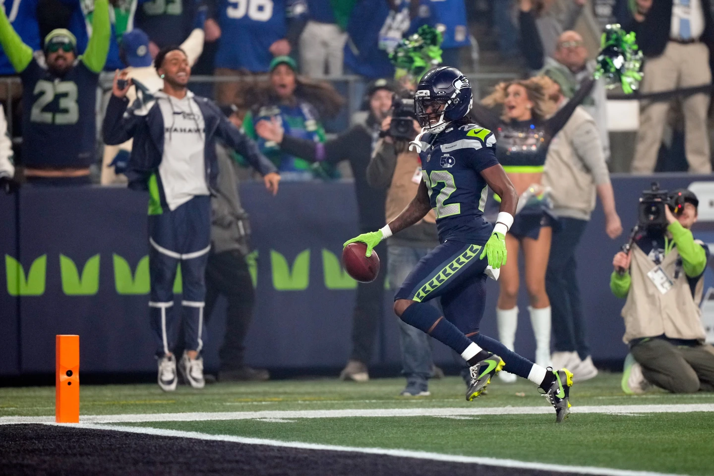 Walker’s three rushing touchdowns tied him with Shaun Alexander for the most in a playoff game in franchise history. Two of the scores came after halftime, and he celebrated one by chucking the ball into the crowd.