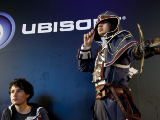 A visitor dressed in costume as Dorian Arno, a character from ‘Assassin’s Creed Unity,’ poses in front of a Ubisoft logo during the Paris Games week on Oct. 29, 2015, in Paris, France. (Chesnot/Getty Images) [Read More…]
