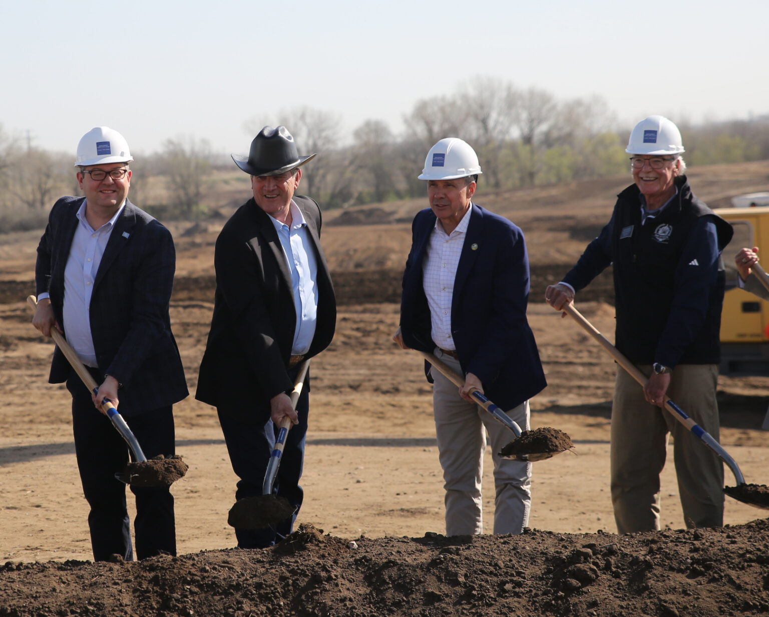Gov. Larry Rhoden, moments before donning a plastic construction-site-grade cowboy hat for a series of ceremonial groundbreaking photos, spoke to an assembled crowd at the Bahnson Avenue site in northeast Sioux Falls. To mark the start of his speech, construction crews raised a massive South Dakota flag, which flapped violently for a few moments before high winds forced it to be lowered.
