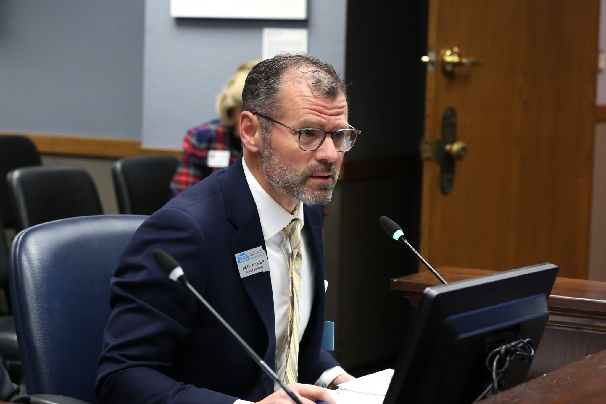 Department of Social Services Secretary Matt Althoff spoke to South Dakota Searchlight after he presented Medicaid enrollment information to the legislative budget committee on Wednesday at the Capitol in Pierre. He said the reason for the higher disenrollments was a combination of South Dakota’s use of an automatic renewal process known as ex parte, and the lingering impact of post-COVID pandemic removals.