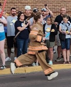 Runner and Sioux Falls Fire-Rescue member Kyle Blakeslee led the group into Mitchell. “It was kind of emotional, I’ve been waiting for this since December when I found out,” said Blakeslee. “It was just really fun to have my family here and to have all the support from Mitchell’s first-responders and the town of Mitchell and just think about all the people that I’m running for and enjoy the weather. It’s just been…I’m at a loss for words, I teared-up.”