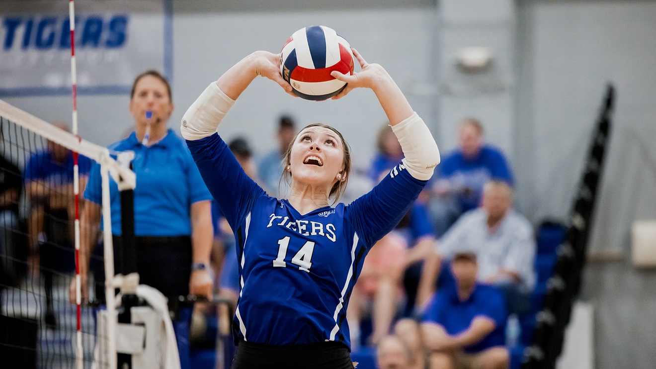 The Tigers began their day of competition against the NAIA’s eighth-ranked team, the IU-Kokomo Cougars. DWU was up to the challenge against the top-10 squad, jumping out to a one-set lead in a blazing 25-17 victory. The offense would take an early lead thanks to the combined efforts of Lily Ranschau and Evy Knoblock, who would combine for 39 kills in four sets of competition. Both athletes would also record double-doubles on the day, with Ranschau tallying 19 kills and 16 digs and Knoblock putting up 20 kills and 12 digs. A dominant offensive performance in set one would carry over into the second set, but IU-Kokomo would match the Tigers with its own effective attack. The surging Cougars would trade leads with the Tigers, but a late defensive stand from DWU would give them a 2-0 lead over IU-Kokomo by a score of 25-23. The Cougars would claim set three by a score of 22-25 to stay alive, but the Tigers would be back in control of the match in the fourth frame. Kayleigh Hybertson would be the third DWU athlete to record a double-double on the day, but she would earn hers through assists, totaling 47 through four sets and recording 16 digs in the process. Set four would be the last of the contest, as DWU would claim a 25-21 victory over the eighth-ranked team in the country.