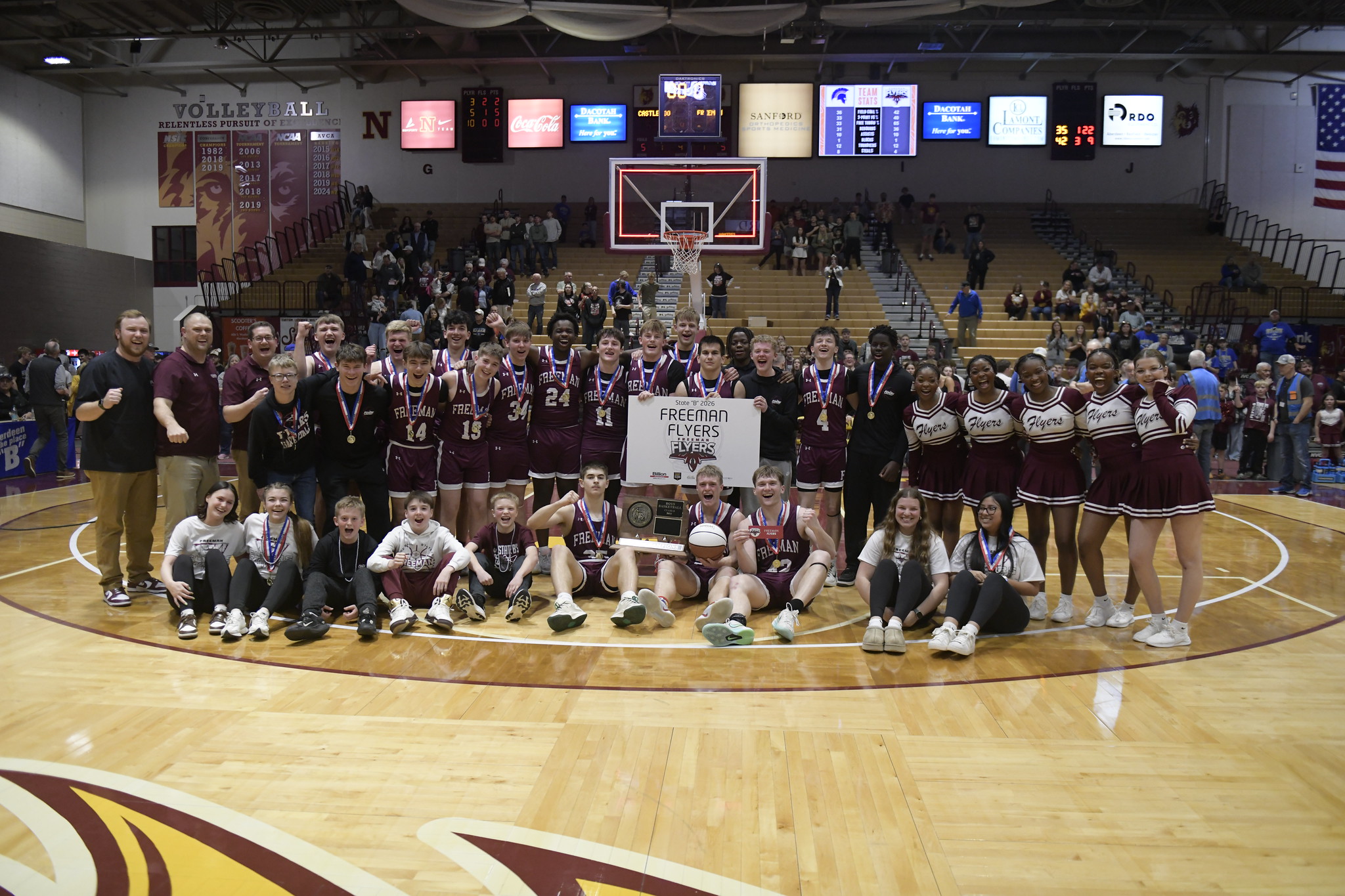 The Flyers erased a 13-point second-half deficit to defeat defending champion Castlewood 61-53 in Saturday’s title game. David Walter led the way with 22 points and 12 rebounds, while Freeman dominated the second half, outscoring the Warriors 41-23.