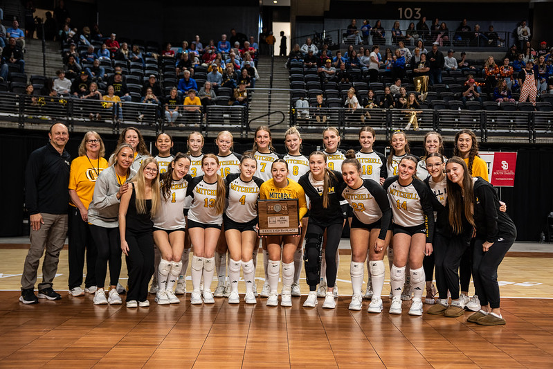 Saturday also marked the final match for four Mitchell seniors; Addie Siemsen (20 assists), Audrey Miller (seven kills), Kenna Soulek (11 digs), and Kambyl Wede (three blocks).