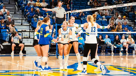 Klein tallied five aces on the night, one shy of the program record for a three-set match. The freshman had two during a 4-0 run in the second set. Joslyn Richardson finished with three aces serves, two of which came as the Jackrabbits started the contest with a 6-0 run.