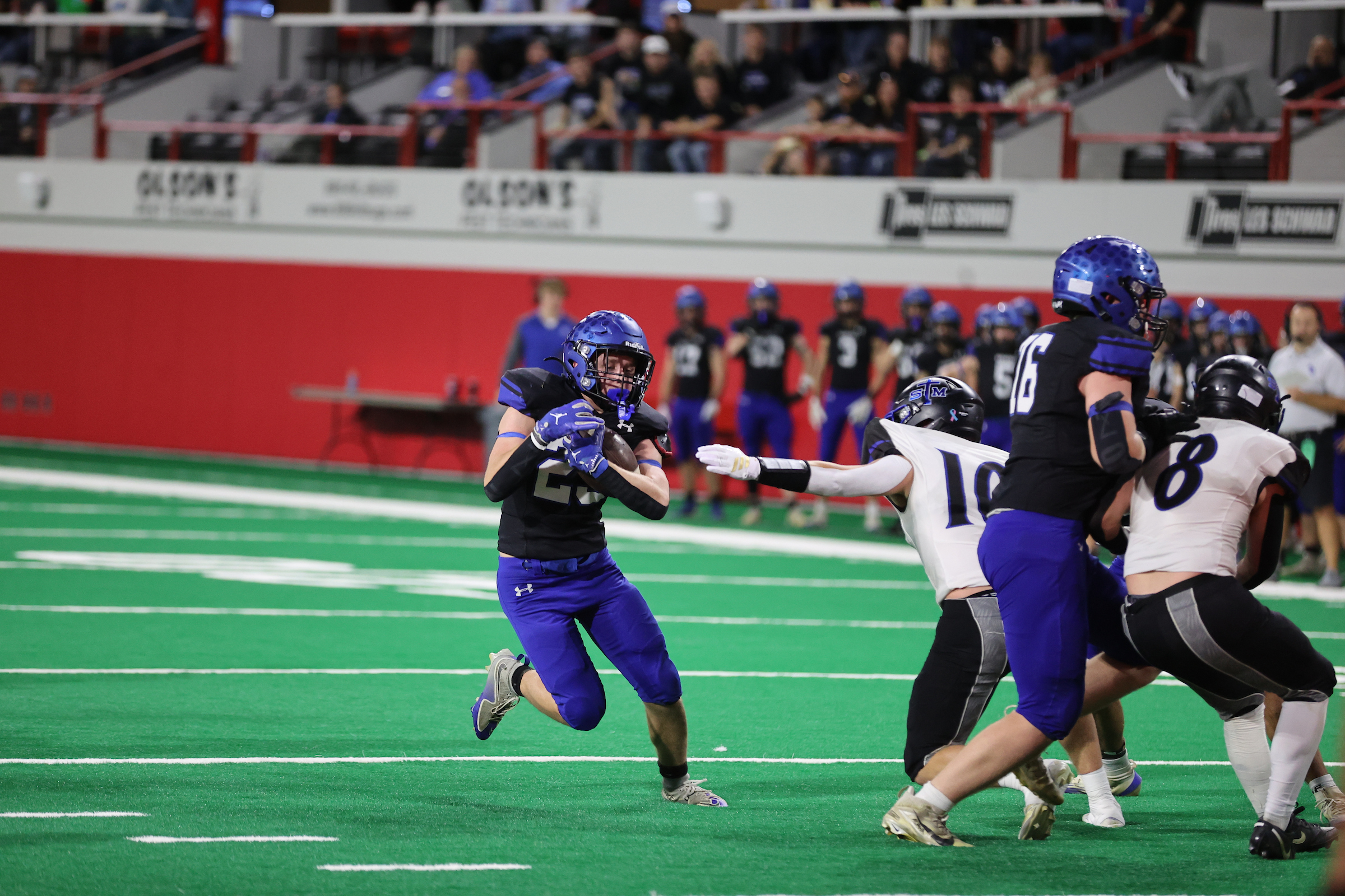 VERMILLION, S.D. — St. Thomas More made history Friday afternoon inside the DakotaDome, outlasting Elk Point-Jefferson 48–38 in a high-scoring Class 11B State Championship to secure the Cavaliers’ first-ever state football title.