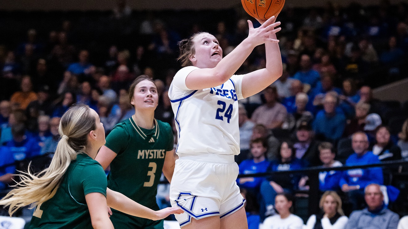 The Tigers opened the contest with a dominant offensive showing, as Dakota Wesleyan outscored ACU 26-8 in the first period. Dakota Wesleyan was led by junior forward Emma Yost, who posted a new career-high of 34 points through 32 minutes of play while also contributing six rebounds, two assists, and a steal. Yost’s impressive scoring effort was supported by fellow junior, Shalayne Nagel. The Springfield, South Dakota native posted 19 points and was a force towards the basket with eight total rebounds, five assists, and four steals.